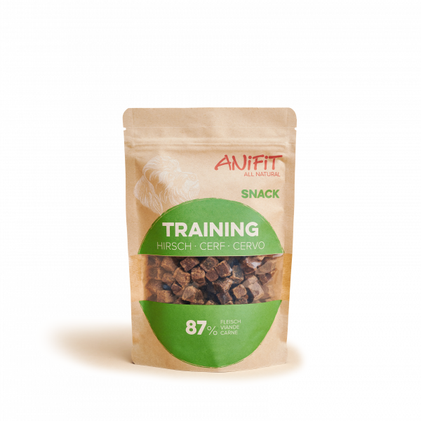 Kleine Belohnungen mit Hirsch-, Rind- und Geflügelfleisch, Joghurt und Mais. 87,5% Frischfleisch.