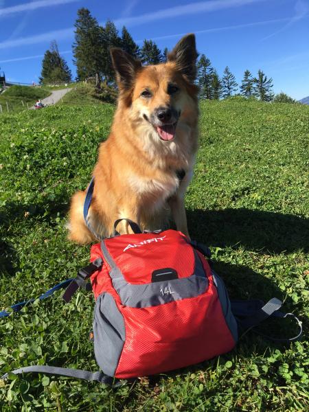 Lo zaino è un compagno costante per la scuola canina, ma naturalmente anche ovunque andiamo ;) Immagine dalla scuola per cani di Riniken AG